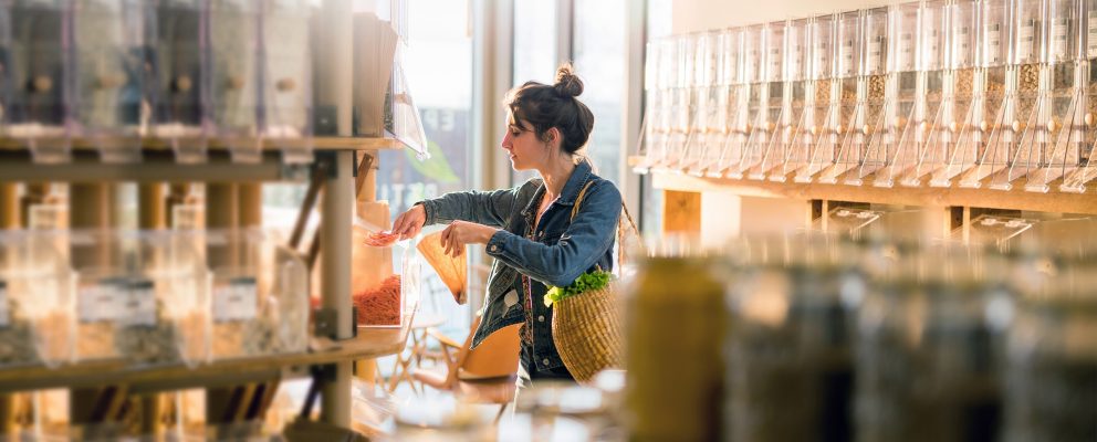 As you’re considering how a zero-waste lifestyle can save you money, you might also revisit how you shop for groceries. Purchasing package-free food like fruits, vegetables, and dry goods measured out by weight is a strategy that Schulhof advocates as a way to produce less waste and save money on family expenses.